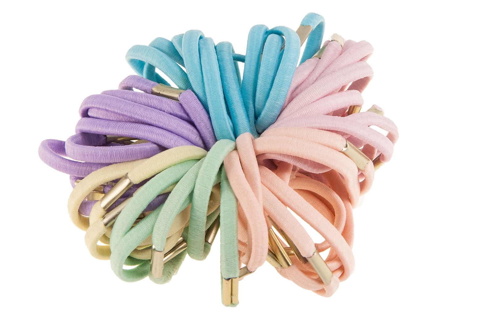Klasyczne gumki do włosów łączone metalową blaszką. Gumki są wytrzymałe i dobrze trzymają włosy.