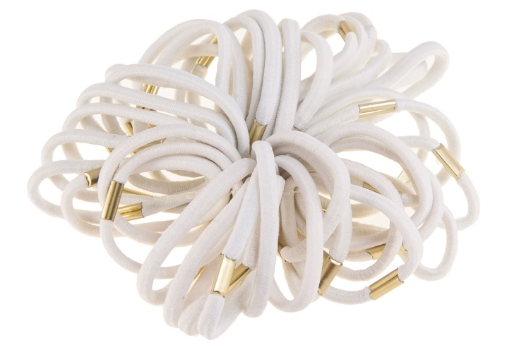 Klasyczne gumki do włosów łączone metalową blaszką. Gumki są wytrzymałe i dobrze trzymają włosy.