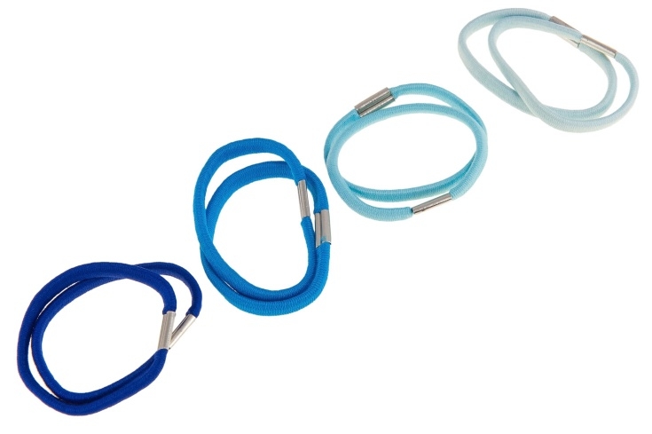 Zestaw składa się gumek w czerech odcieniach niebieskiego koloru.