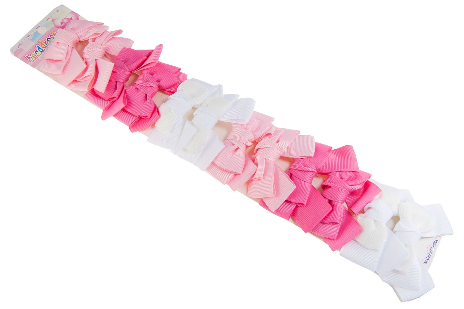 Piękna kokarda doda uroku każdej fryzurze. Kokarda umocowana na klasycznym górniaku.Zestaw spinek składa się z trzech kolorów: biały, jasny i ciemny różowy.