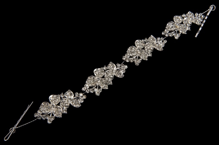 Unicra ślubna.Elegancka ozdoba do włosów, ozdobiona szlifowanymi korakikami i perłkami.
