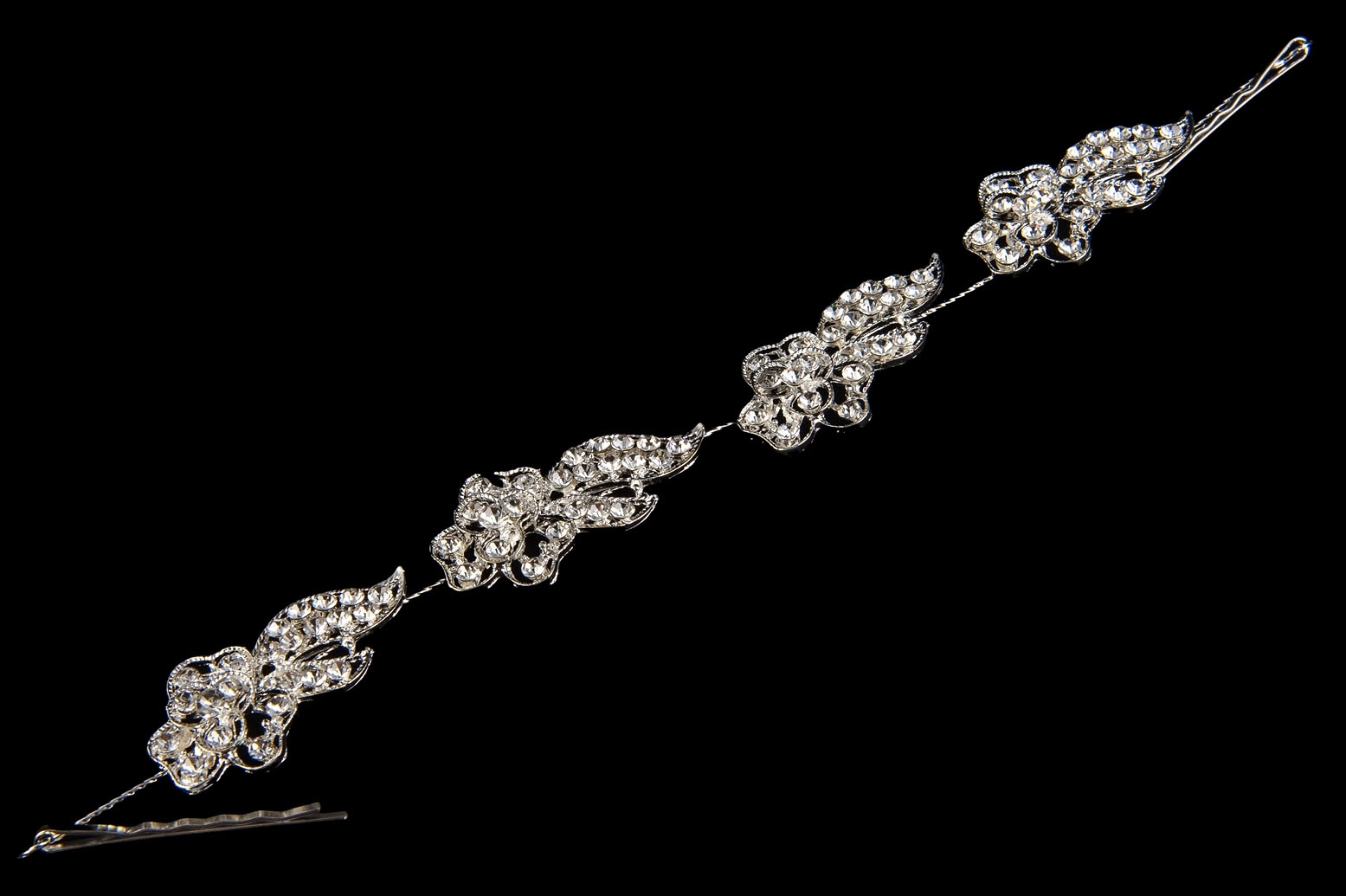 Unicra ślubna.Elegancka ozdoba do włosów, ozdobiona szlifowanymi korakikami i perłkami.