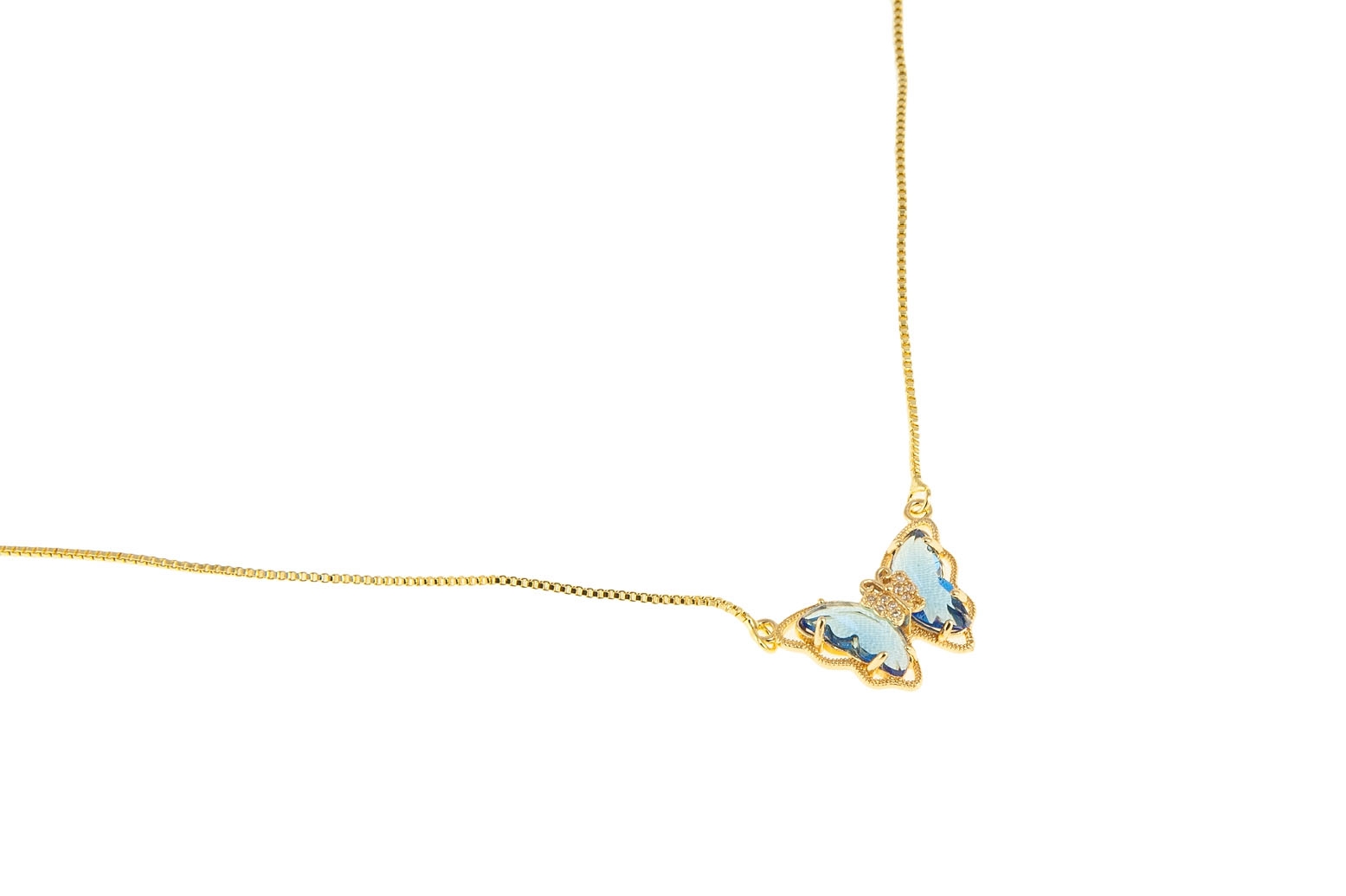 Elegancki, złoty łańcuszek z uroczyą przywieszką w kształcie motyla.