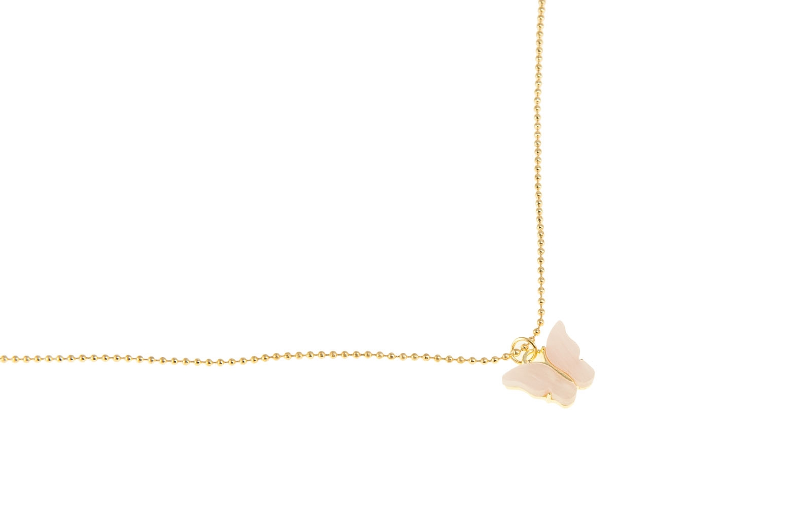 Elegancki, złoty łańcuszek z uroczyą przywieszką w kształcie motyla.