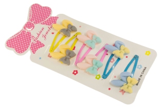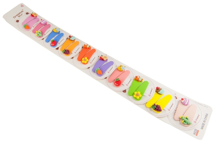 Spinki do włosów ozdobiene uroczymi kwiatkami i owocami.