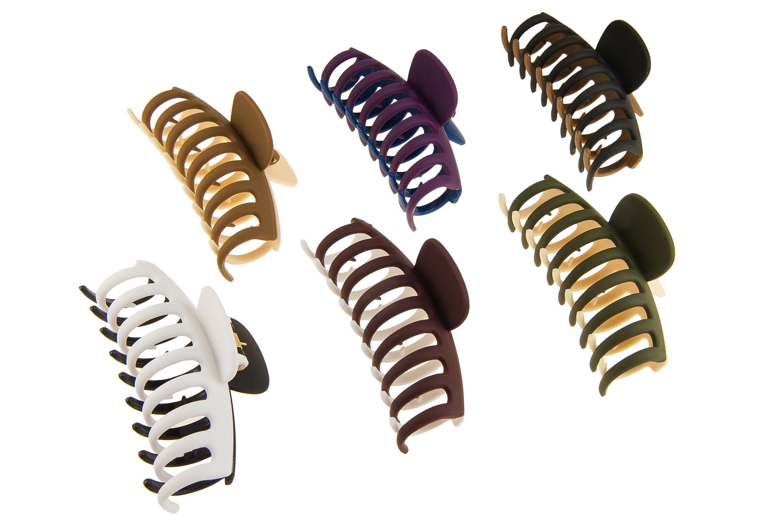 Dwukolorowe spinki dobrze trzymające włosy. Zestaw składa się z sześciu kolorów.