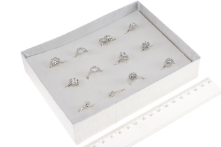 Eleganckie pierścionki w kolorze srebrnym ozdobione szlifowanymi kamieniami.