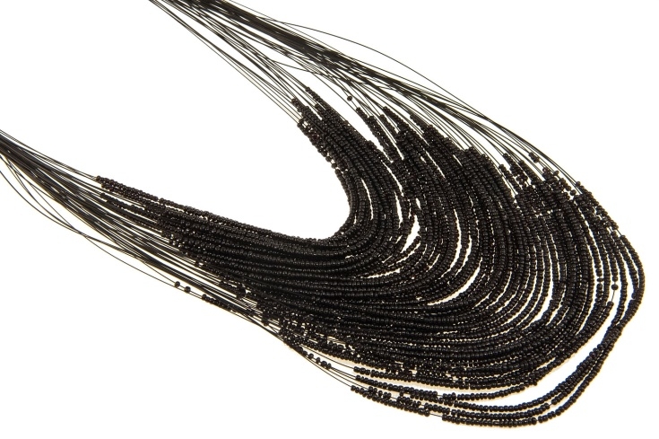 Korale składają się ze żyłek i koralików w kolorze czarnym.