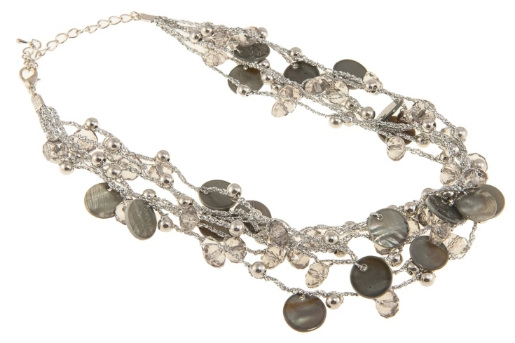 Eleganckie naszyjnik, posiada regulacje długości.Naszyjnik składa się z szarych ozdobnych kamieni.