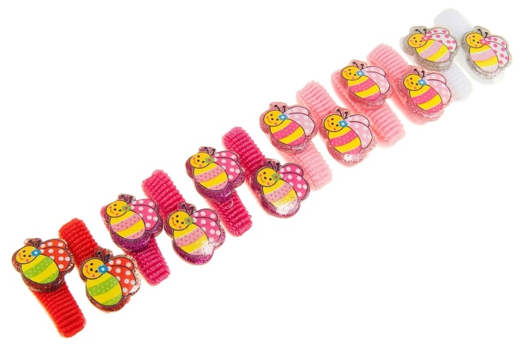 Klasyczne gumki do włosów z uroczą ozdobą w kształcie pszczółek.Zestaw składa sie z czterech kolorów: biały, czerwony, jasny i ciemny różowy.