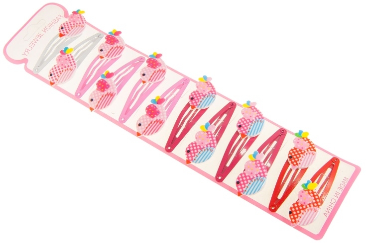 Klasyczne spinki do włosów z uroczą ozdobą w kształcie ptaszków.