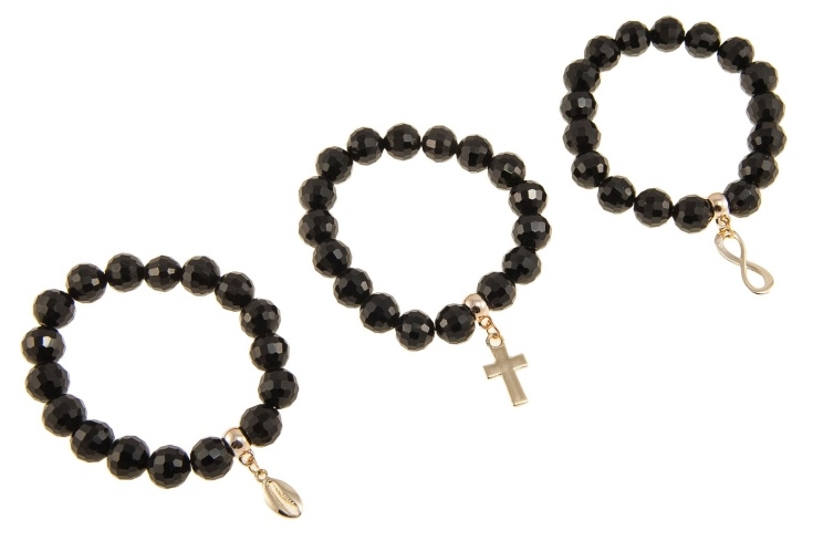 Elegancka, czarna bransoletka wykonana ze szlifowanych koralików.Bransoletka pięknie się mieni i posiada uroczą przywieszkę. Przywieszki wybierane losowo.