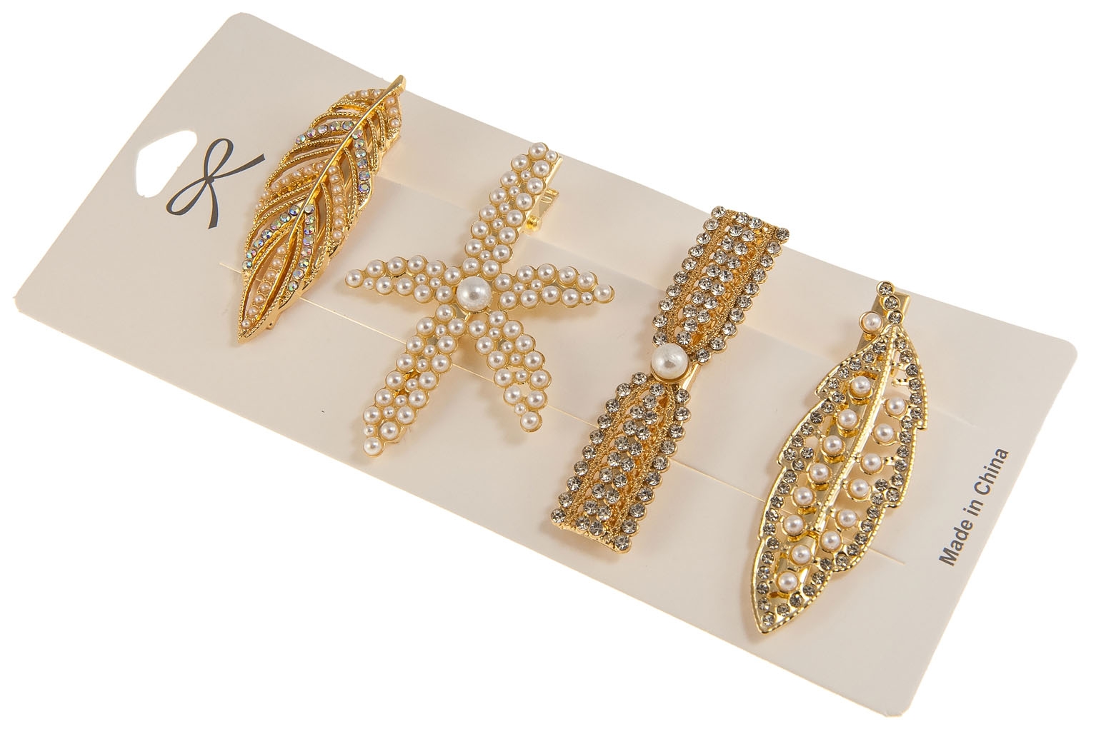 Zestaw składa się z czterech różnych spinek w złotym kolorze z pięknymi ozdobami.