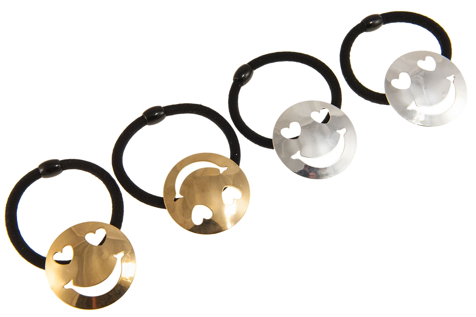Eleganckie gumki do włosów, są wytrzymałe i dobrze trzymają włosy. Gumki ozdobine są srebrnymi i złotymi buźkami.Wymiary gumki: