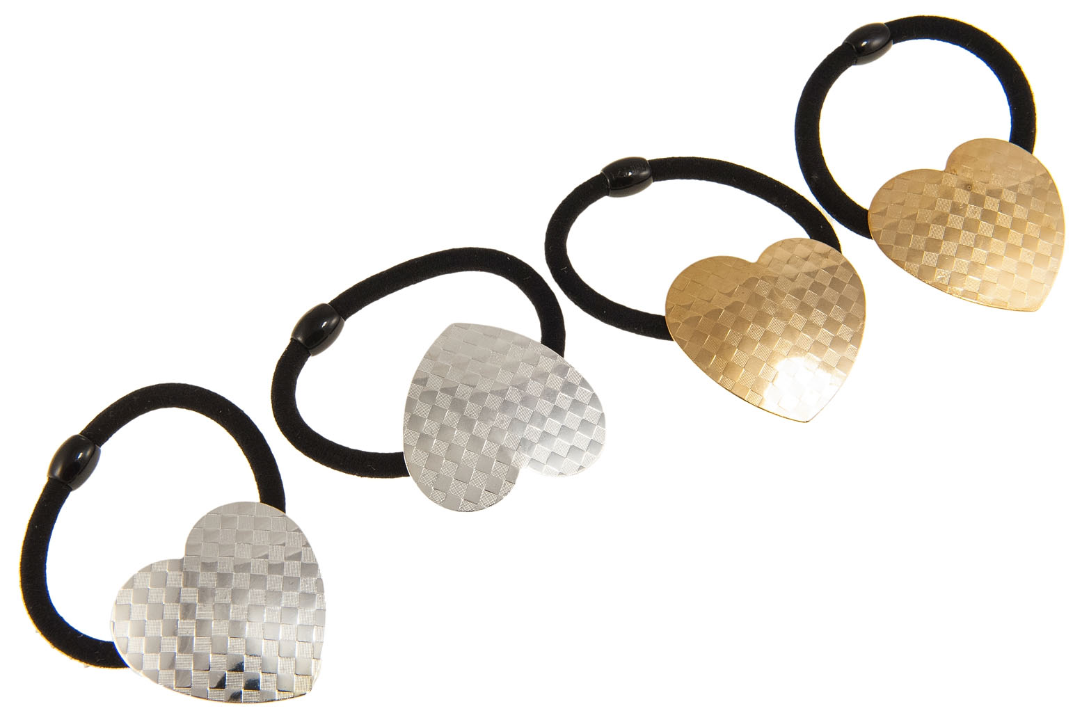 Eleganckie gumki do włosów, są wytrzymałe i dobrze trzymają włosy. Gumki ozdobine są srebrnymi i złotymi serduszkami.Wymiary gumki: