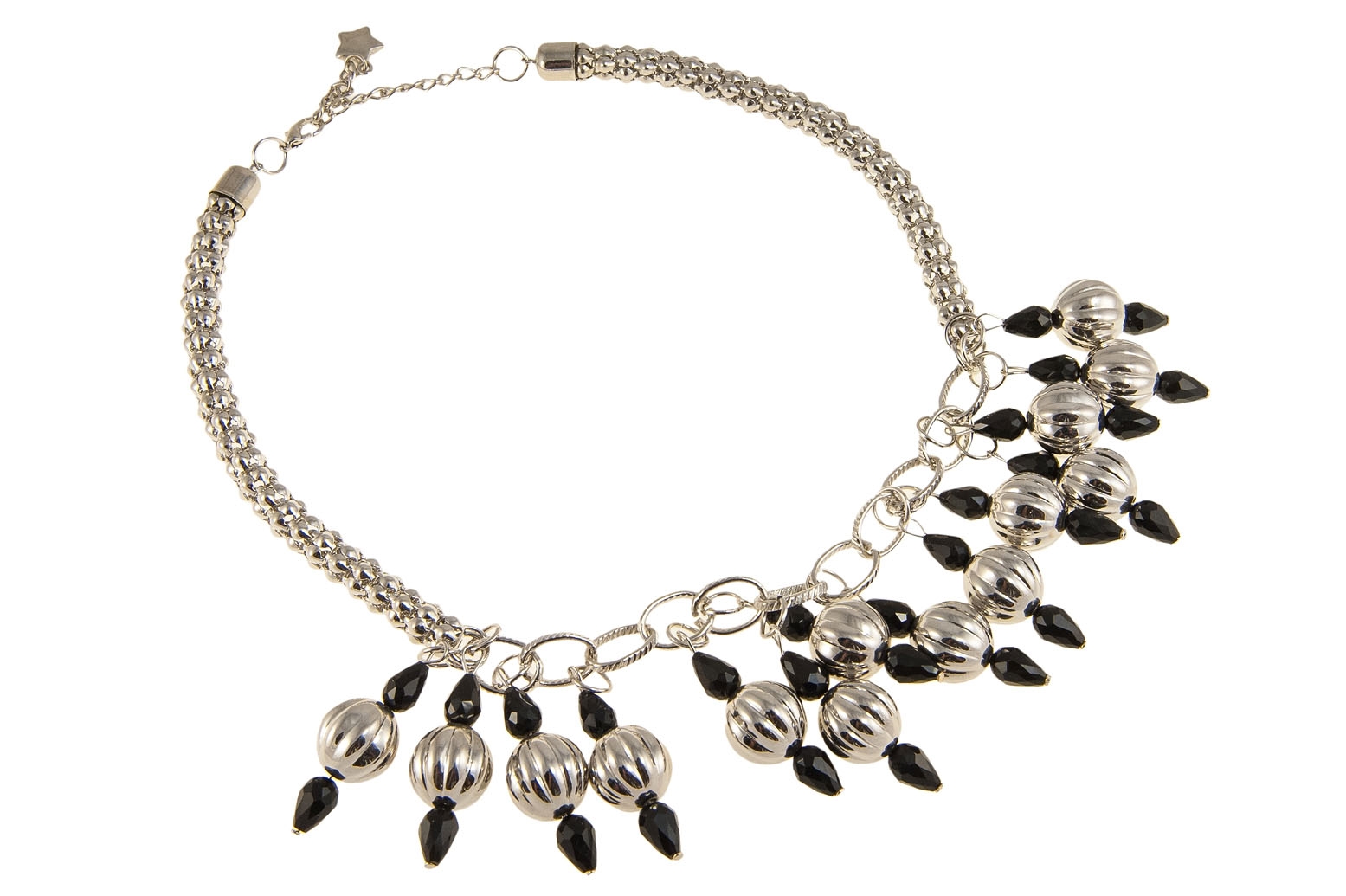 Oryginalny naszyjnik w kolorze srebrnym z podwieszonymi koralikami.Wymiary łańcuszka: