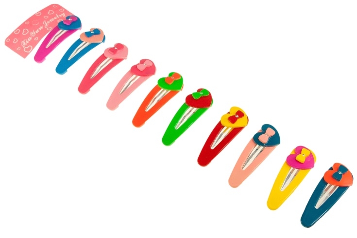 Klasyczne spinki do włosów z uroczą ozdobą w kształcie serduszka.Zestaw składa się z dziesięciu kolorowych spinek.