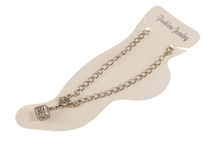 Elegancka bransoletka na nogę z dżetową kostką.Bransoletka pięknie się mieni i posiada uroczą przywieszke.