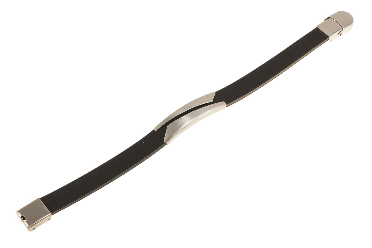 Elegancka, męska bransoletka wykonana z czarnej ala skóry i srebrnego elementu ozdobnego.