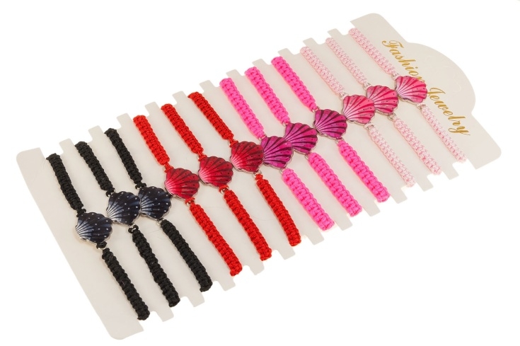 Kolorowe bransoletki, składające się ze sznurków i ozdoby w kształcie muszelki.Bransoletka posiada regulację.