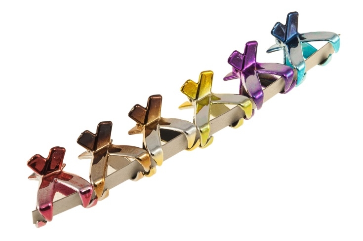 Zestaw składa się z kolorowych spinek o metalicznym wykończeniu.