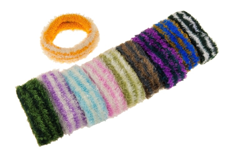 Gumki do włosów w paski, są wytrzymałe i dobrze trzymają włosy.Zestaw składa się z gumek w dziesięciu kolorach.
