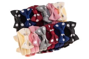 Oryginalne gumki do włosów, są wytrzymałe i dobrze trzymają włosy. Gumki ozdobione są materiałowymi kwiatkami.Zestaw składa się z gumek w sześciu kolorach: niebieski, szary, bordowy, brązowy, zielony i czarny.