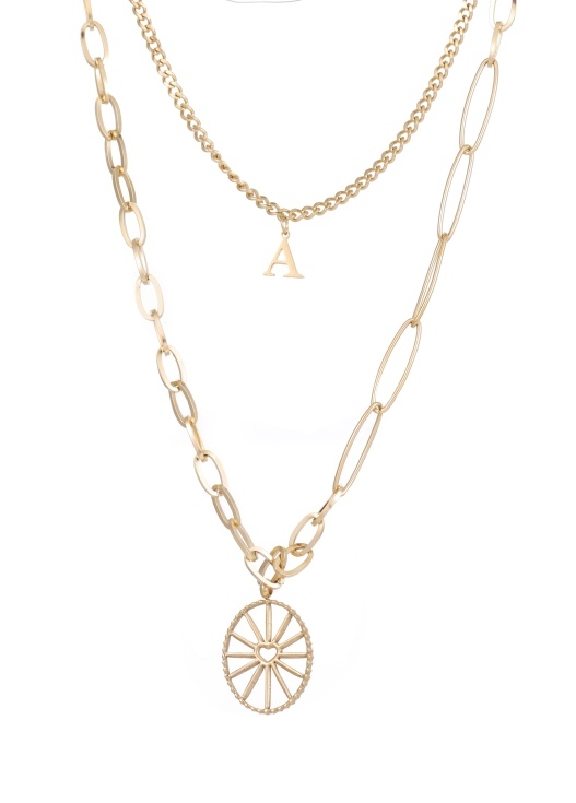 Elegancki, złoty łańcuszek z uroczą przywieszką w kształcie kółka z serduszkiem.