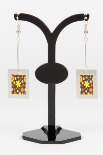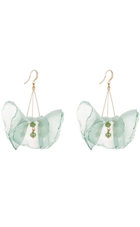 Eleganckie kolczyki z materiałowym zielonym kwiatkiem.