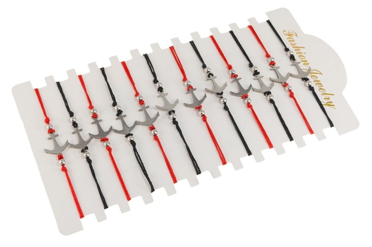 Czerwone i czarne bransoletki ze srebrnymi kotwicami