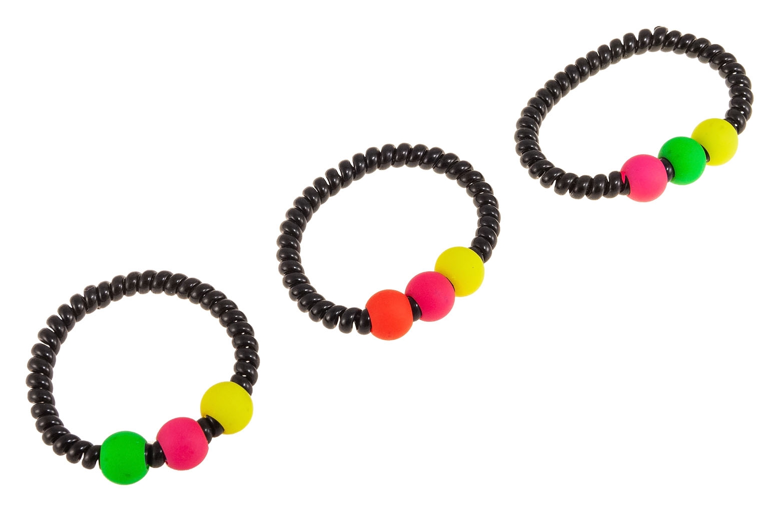 Sprężynki gumki do włosów, są wytrzymałe i dobrze trzymają włosy.Zestaw składa się z gumek w czarnym kolorze z neonowymi koralikami.