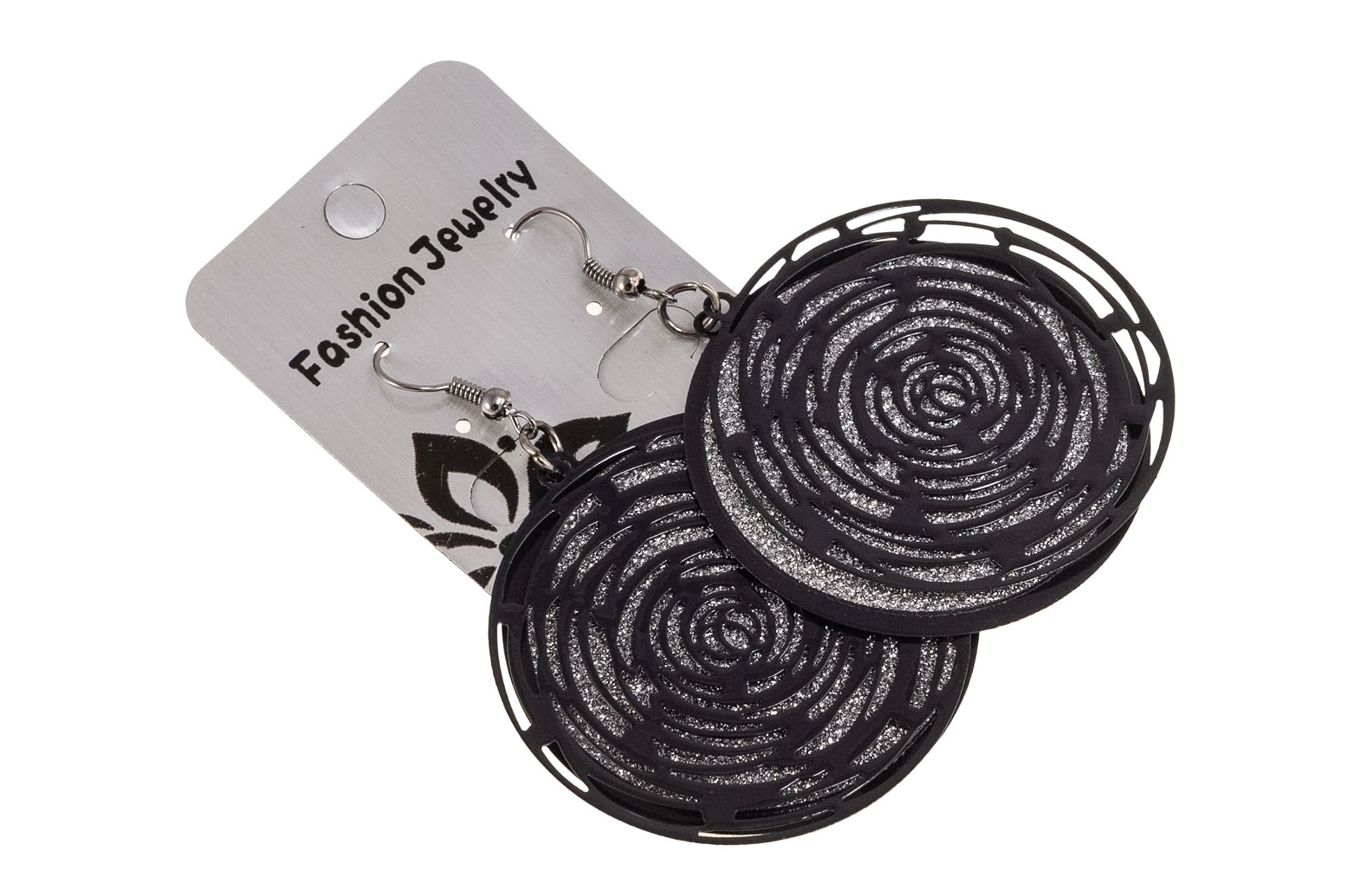 Wiszące, czarne kolczyki, ozdobione srebrnym brokatem.Wymiary kolczyków: