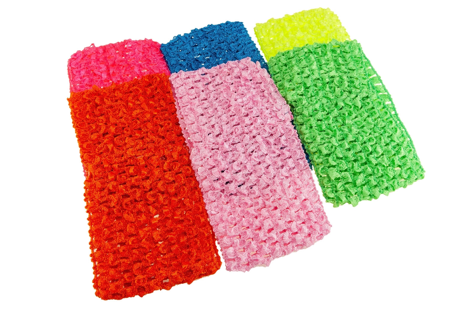 Opaska na gumce wykonana z plecionego materiału.Zestaw składa się z sześciu neonowych kolorów: czerwony, różowy, fioletowy, niebieski, zielony i żółty.