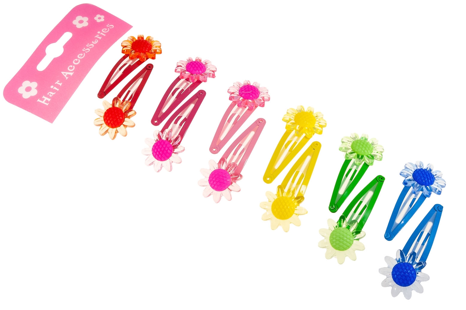 Klasyczne spinki do włosów z uroczą ozdobą w kształcie kwiatka.