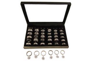 Delikatny pierścionek wykonany z małych, szlifowanych, fioletowych koralików.
