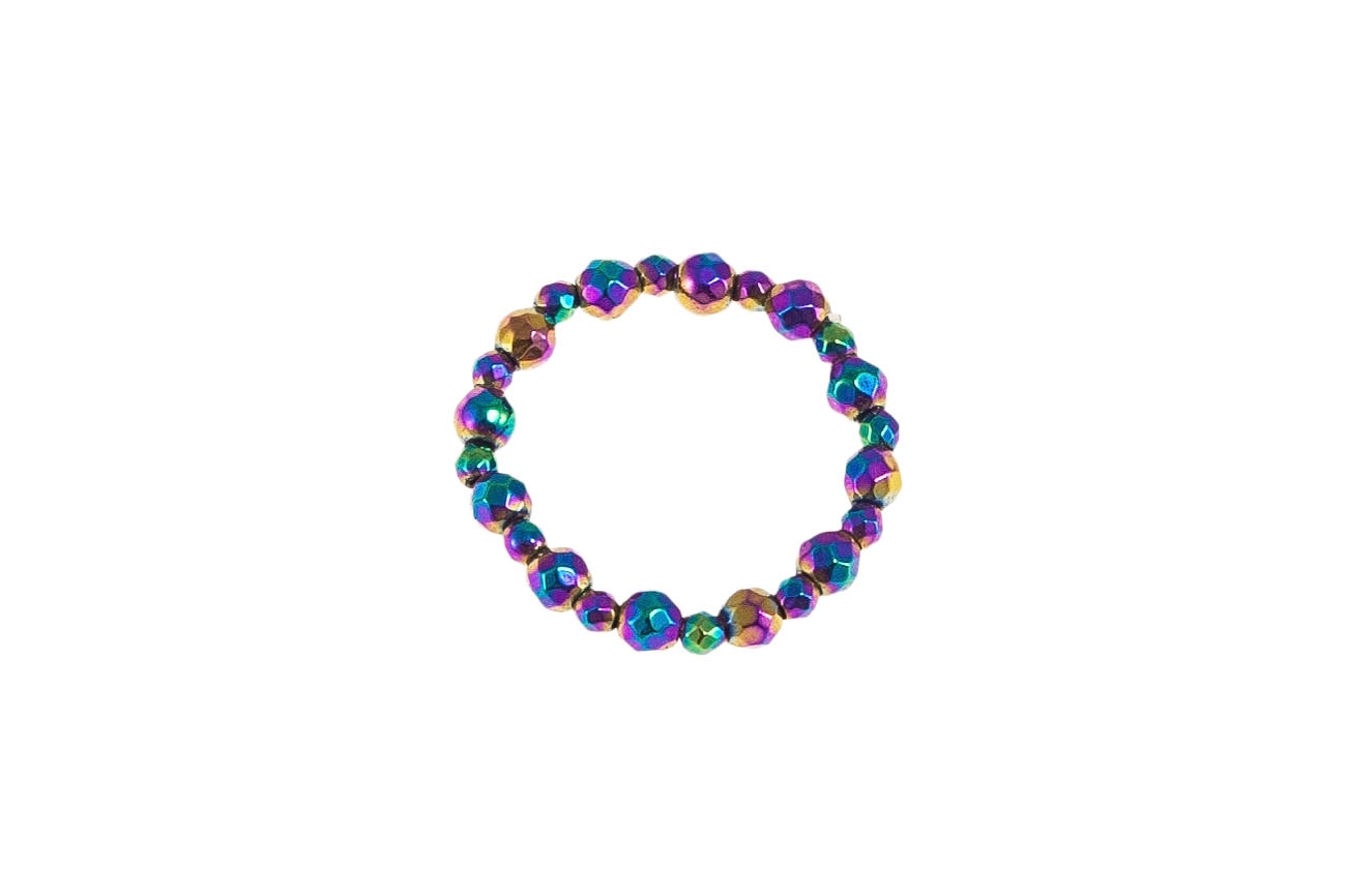 Delikatny pierścionek wykonany z małych, szlifowanych koralików.Wymiary pierścionka: