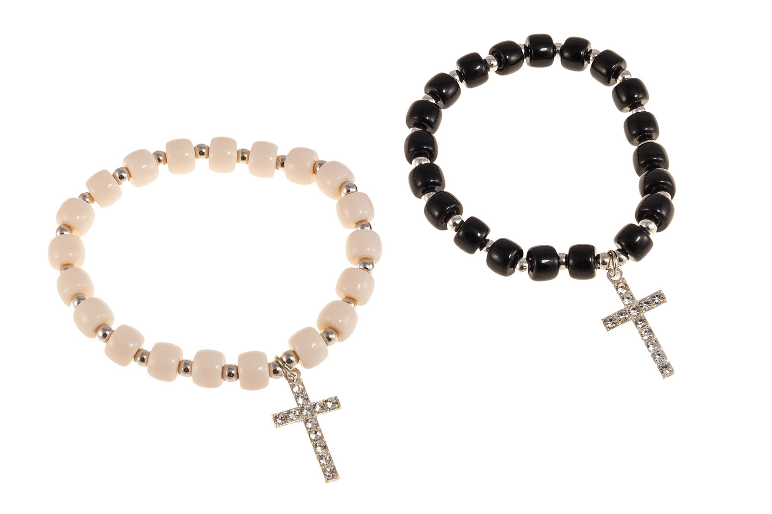 Elegancka bransoletka wykonana z koralików i przywieszki w ksztalcie krzyża z szlifowanymi kamieniami.Bransoletka pięknie się mieni i posiada uroczą przywieszkę.
