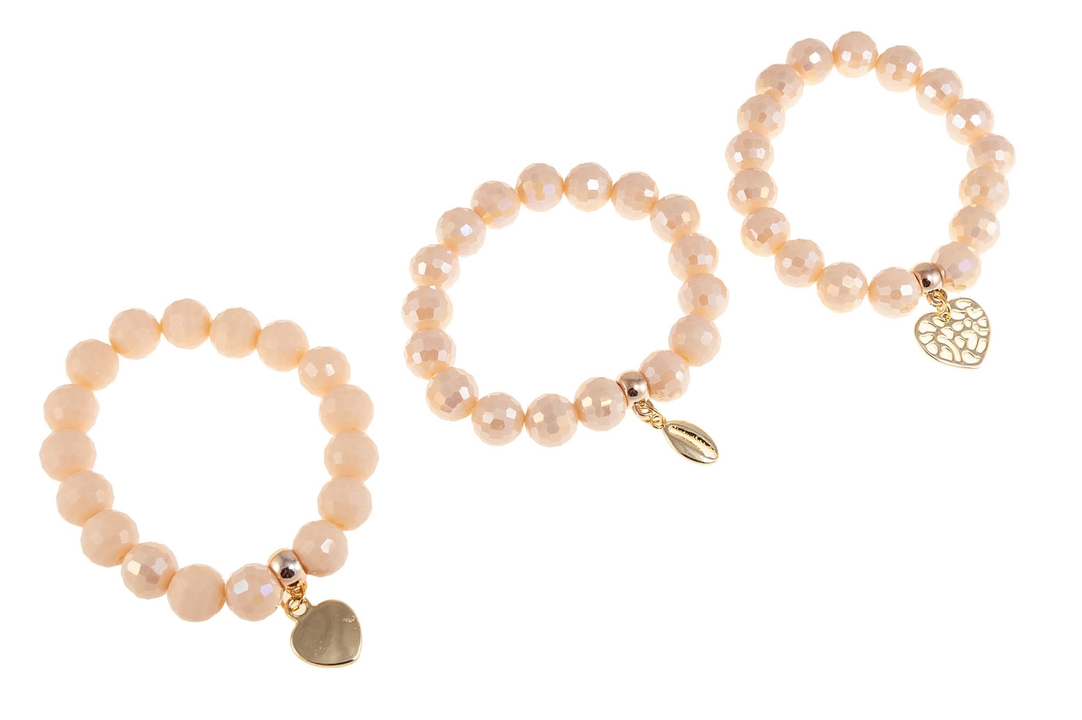 Zestaw składa się z trzech bransoletek w kolorze beżowo-różowym.