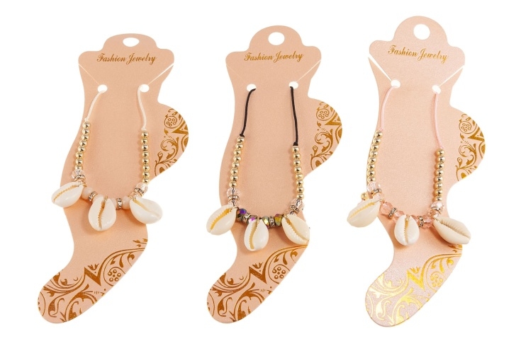 Elegancka bransoletka na nogę wykonana z sznurków, koralików i muszelek.Bransoletka pięknie się mieni i posiada uroczą przywieszke.