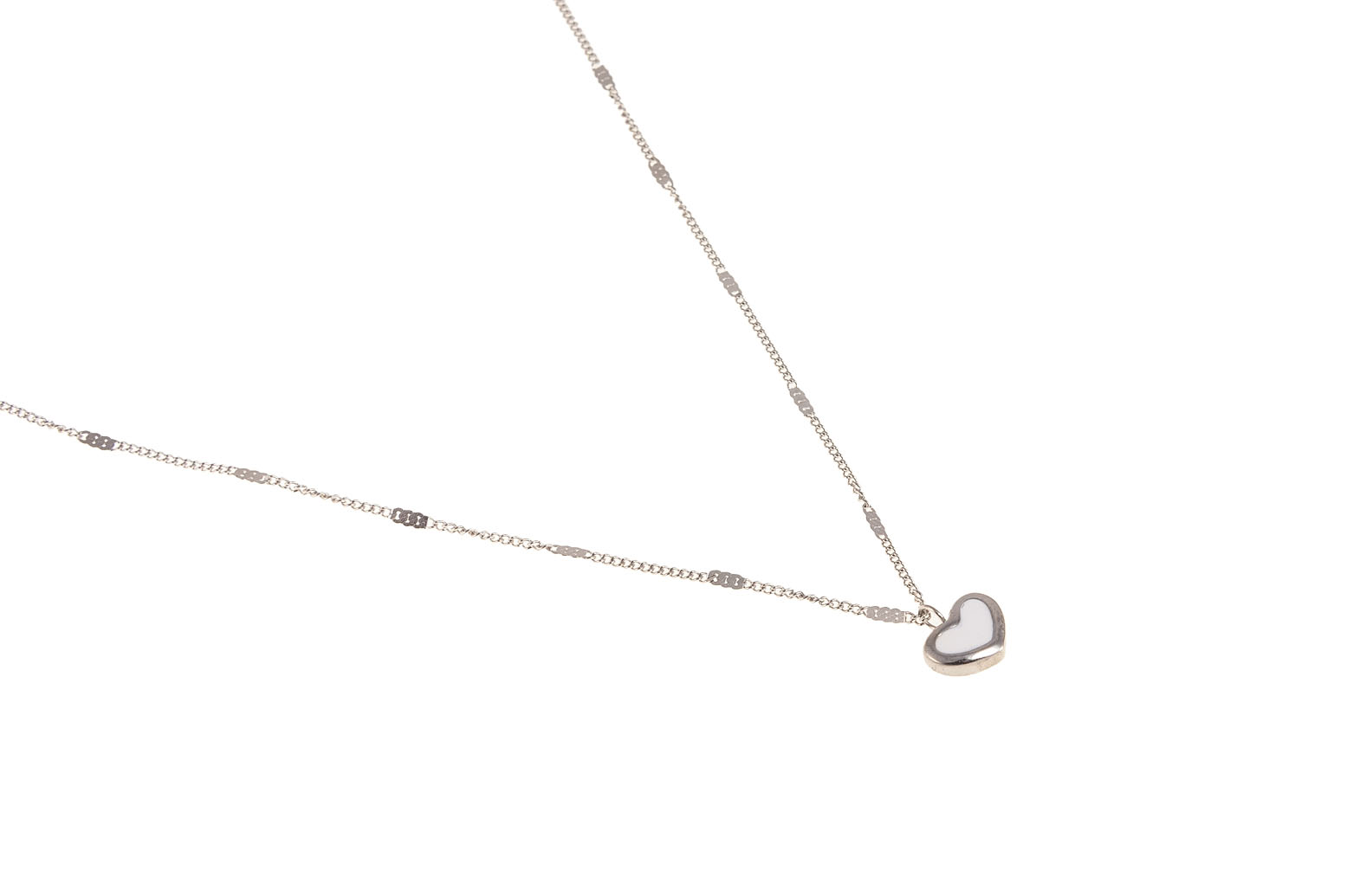 Elegancki, srebrny łańcuszek z uroczyą przywieszką w kształcie serduszka z białą emalią.Wymiary naszyjnika: