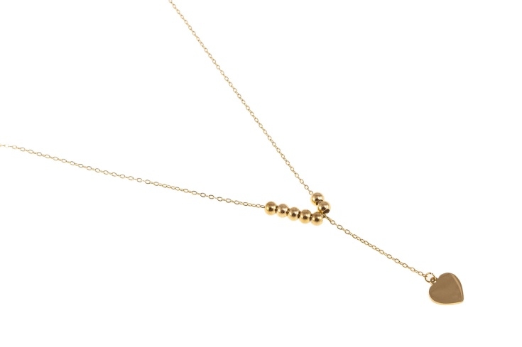 Elegancki złoty naszyjnik z koralikami i serduszkiem
