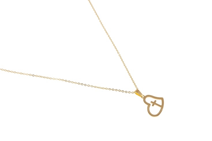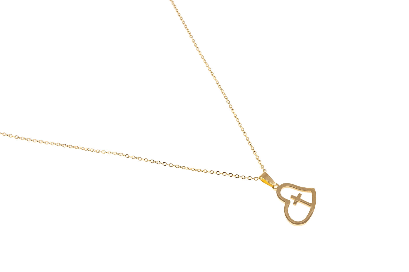 Elegancki, złoty naszyjnik z przywieszką w kształcie serduszka z krzyżykiem.Wymiary naszyjnika: