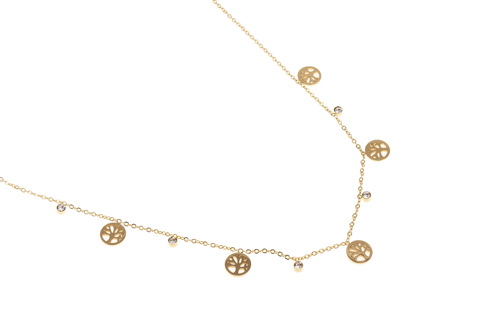 Elegancki złoty naszyjnik drzewkami i dżetami