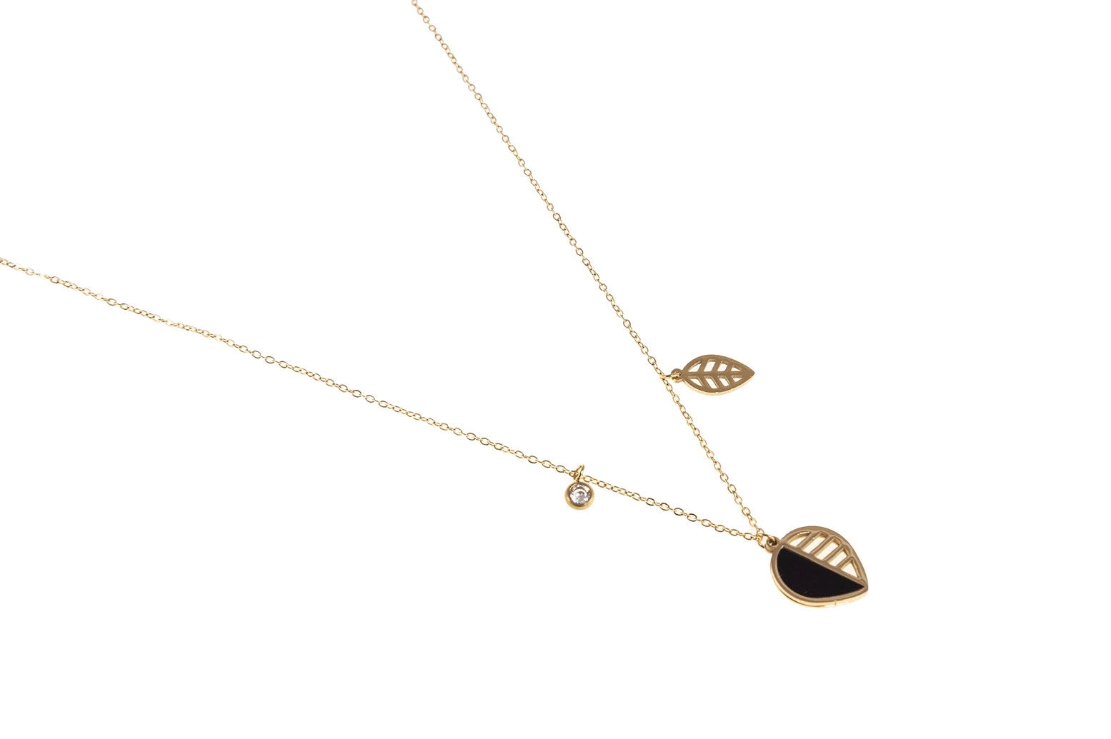 Elegancki, złoty naszyjnik z listami i dżetem.Wymiary naszyjnika: