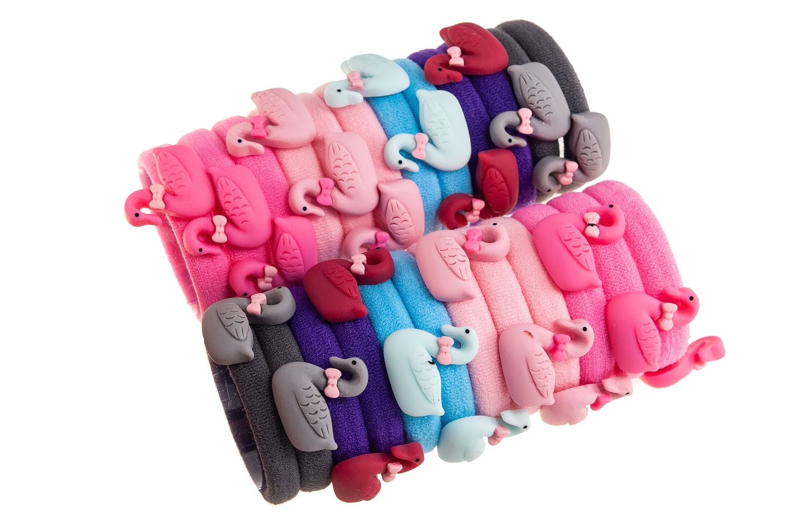 Klasyczne gumki do włosów z uroczą ozdobą w kształcie łabędzi.