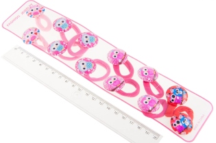 Klasyczne gumki do włosów z uroczą ozdobą w kształcie kokardy.Zestaw składa się z pięciu kolorów: błękitny, fioletowy, żółty, czerwony i różowy.
