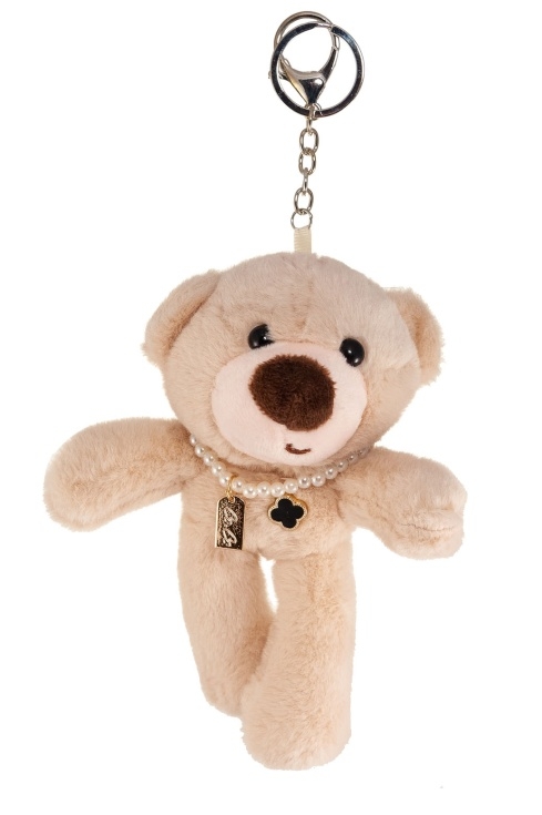 Uroczy brelok w kształcie misia w kolorze beżowym.Brelok idealnie nada się na prezent, który ucieszy każde dziecko.