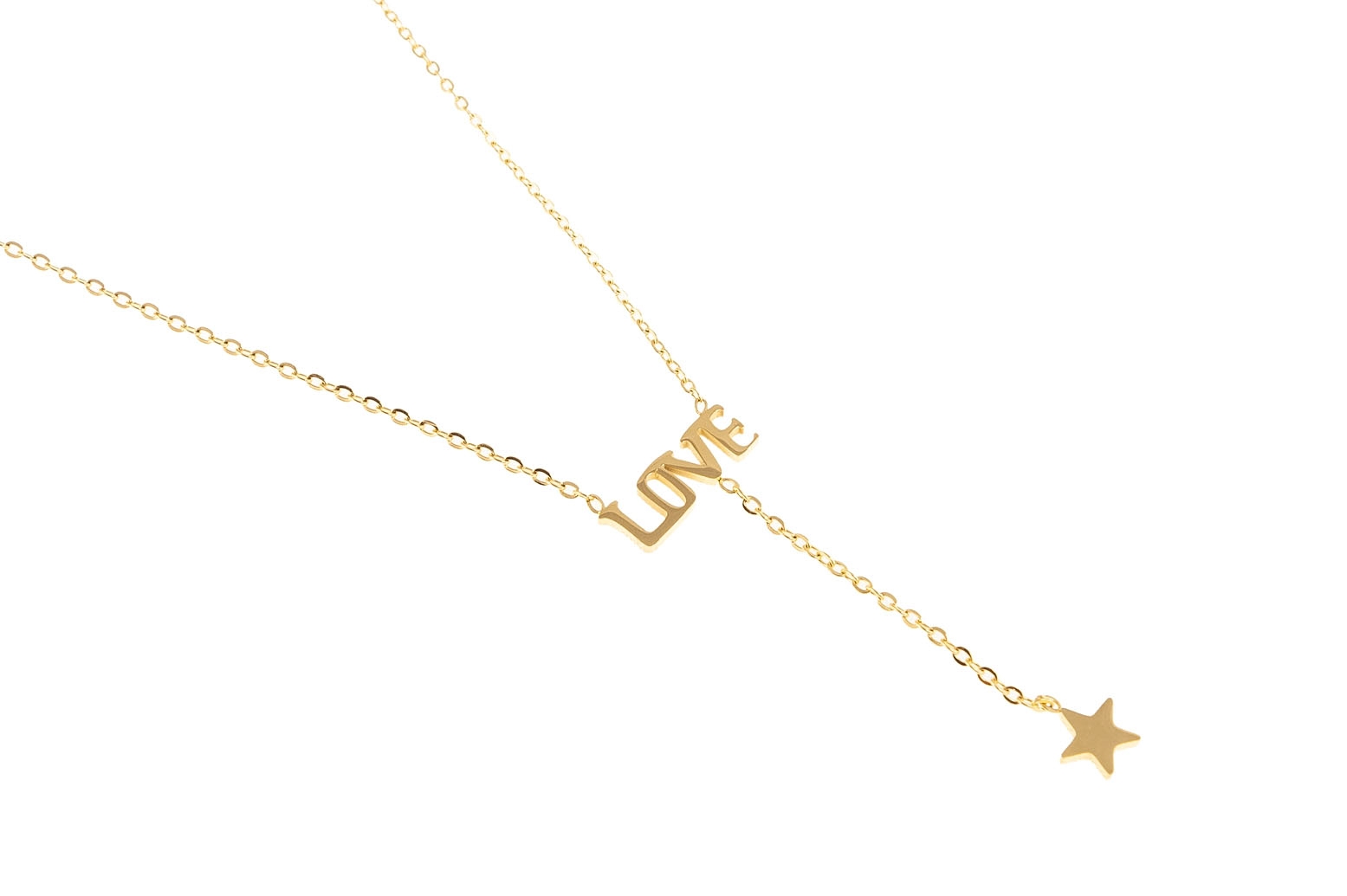 Elegancki, złoty łańcuszek z przywieszką love i gwiazdką.Wymiary naszyjnika: