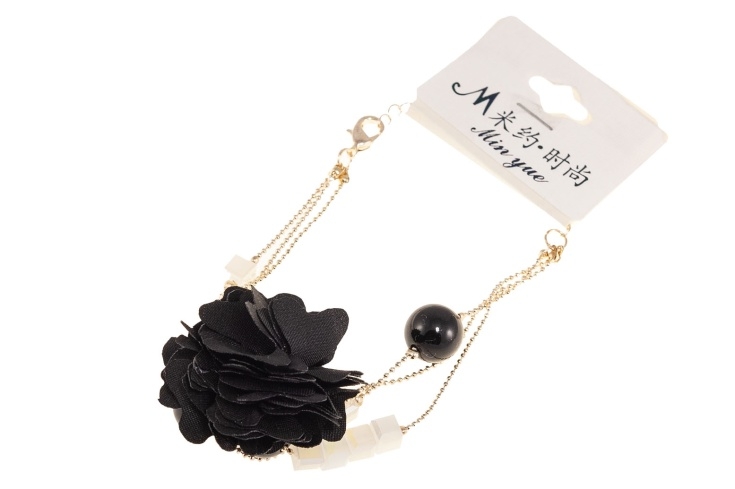 Oryginalna bransoletka wykonana z koralików i materiałowego, czarnego kwiatka.Wymiary bransoletki: