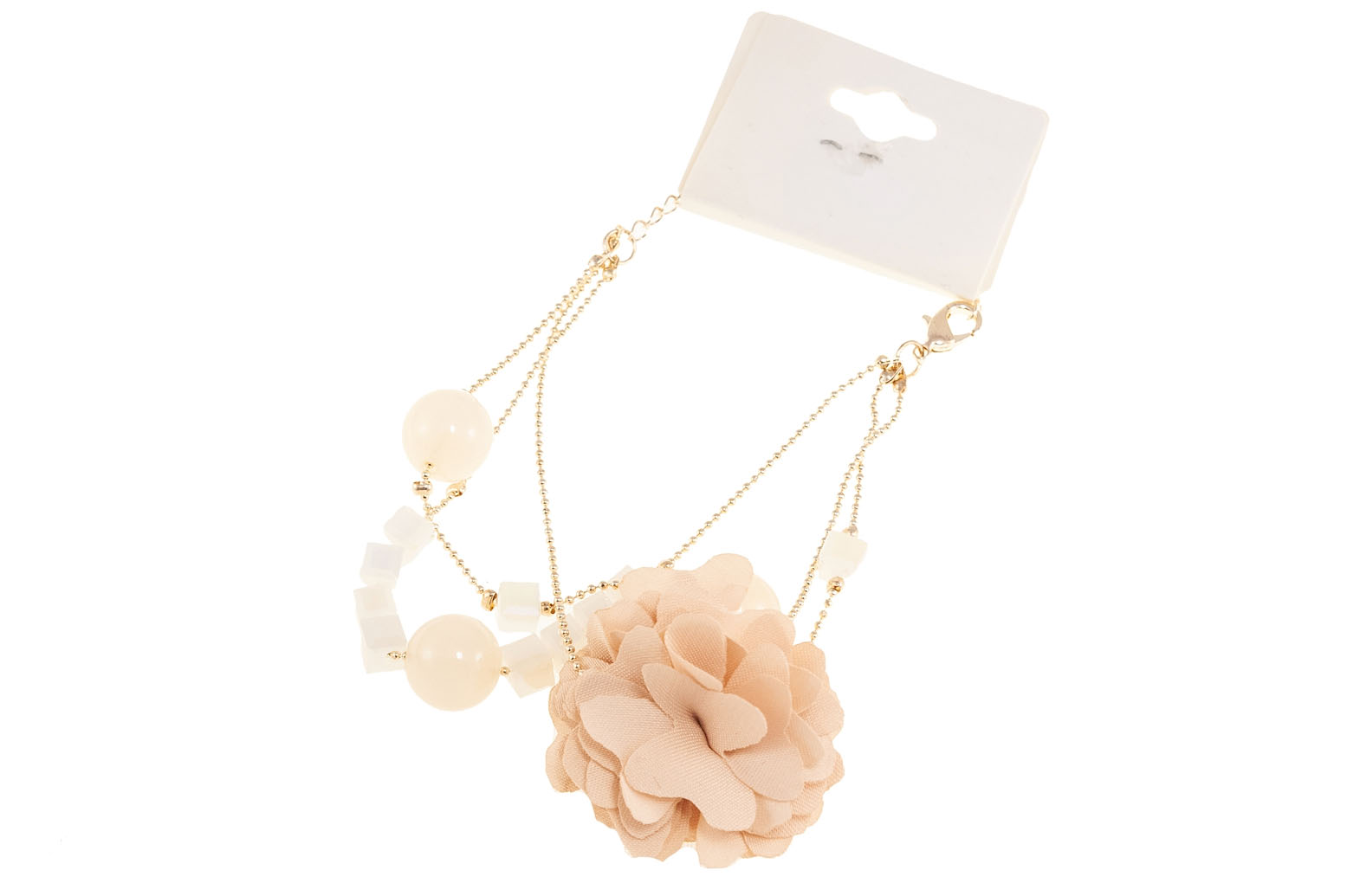 Oryginalna bransoletka wykonana z koralików i materiałowego, beżowego kwiatka.Wymiary bransoletki: